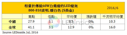 TrendForce集邦科技旗下LED行業(yè)研究品牌LEDinside(LED在線)最新價(jià)格報(bào)告指出,6月全球取代40W白熾燈的LED燈泡價(jià)格零售均價(jià)下降0.2%,來到9.5美元;取代60W白熾燈的LED燈泡,零售均價(jià)下降0.1%,為12.9美元。