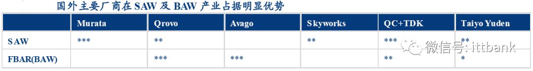 全球BAW濾波器市場份額前三位分別為博通(87%)、Qorvo(8%)、太陽誘電(3%),合計占比達(dá)98%。