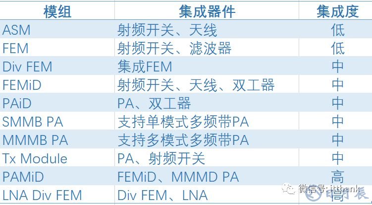 移動終端中的射頻前端模塊/射頻頻器件主要包括功率放大器(PA,PowerAmplifier)、雙工器(Duplexer )、射頻開關(guān)(Switch)、濾波器(Filter)、低噪放大器(LNA,LowNoiseAmplifier)等。