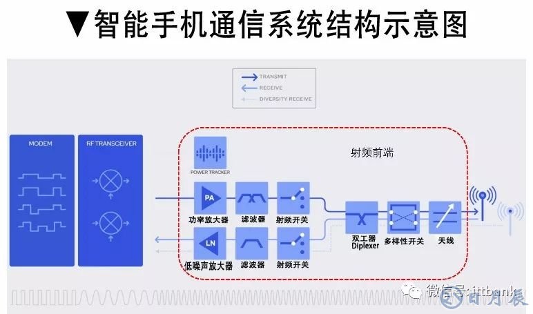 終端設(shè)備的無線通信模塊主要分為射頻前端模塊(RFFEM)、射頻收發(fā)模塊、以及基帶信號處理器三部分。其中,射頻前端模塊主要是實(shí)現(xiàn)信號在不同頻率下的收發(fā)。