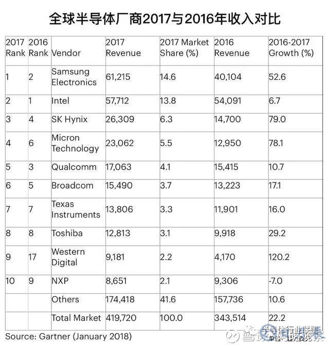 回顧2017年內(nèi)存占半導(dǎo)體收入增長的三分之二以上,成為最大的半導(dǎo)體類別。當(dāng)年情況可以查到,內(nèi)存收入激增的主要驅(qū)動因素是由于供應(yīng)短缺導(dǎo)致的價格上漲。NAND閃存價格首次同比上漲17%,DRAM價格上漲44%。