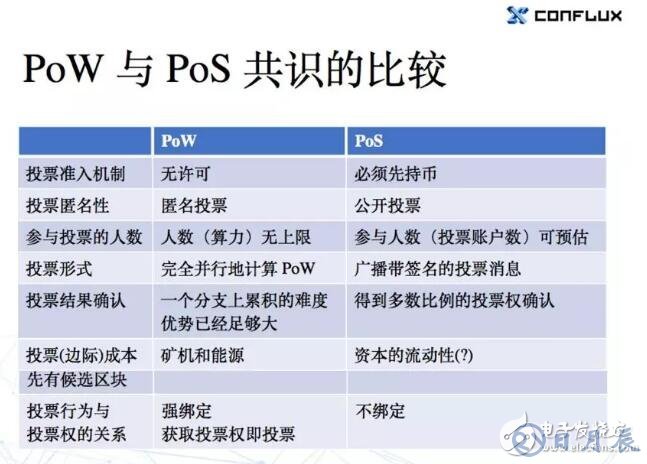 我們最后簡單看一下基于 PoW 和 PoS 機制的共識的比較。
