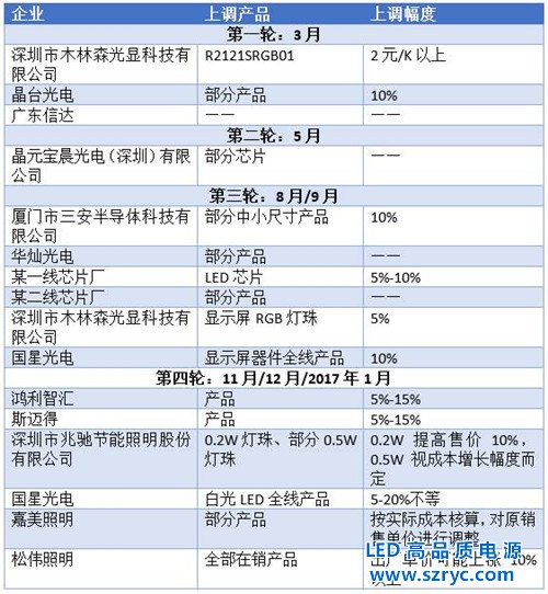 此前宣稱不漲價的白光LED主要供應(yīng)商也掄起了“漲價大錘”,鴻利智匯、斯邁得產(chǎn)品價格上調(diào),國星光電的白光LED產(chǎn)品也在12月1日開始漲價。而漲價也終于惠及到了下游照明廠商,包括雷士照明、松偉照明、嘉美照明以及中山等一些燈飾廠商的調(diào)價函在微信朋友圈瘋傳。