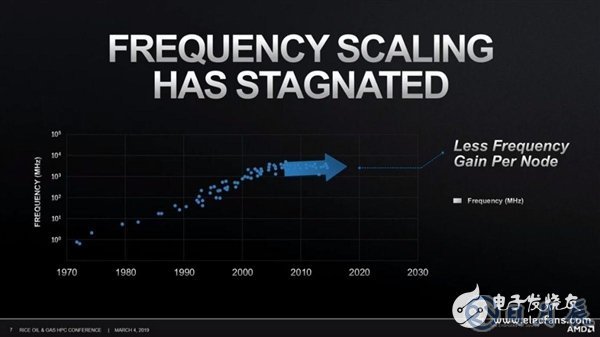 AMD稱,雖然光刻工藝在精進(jìn),但是頻率甚至要開始走下坡路,需要一些新的設(shè)計(jì)助力。