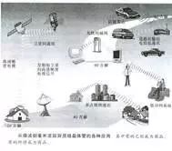 除了手機(jī)通信以外,還有其它的無(wú)線(xiàn)通信手段(見(jiàn)圖20),包括:衛(wèi)星傳輸高清晰度電視、衛(wèi)星間通訊、多點(diǎn)視頻通訊、無(wú)線(xiàn)局域網(wǎng)、交通工具之間的通訊、以及防撞雷達(dá)等。它們的工作頻率在微波波段,從幾個(gè)GHz到100GHz。