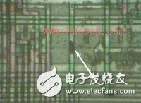 (上圖為PIC12C508A切割掉加密融絲后放大1000X后的圖片)