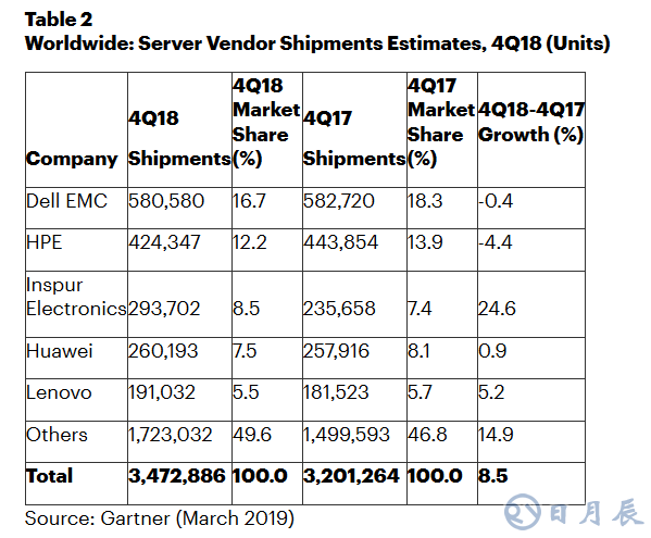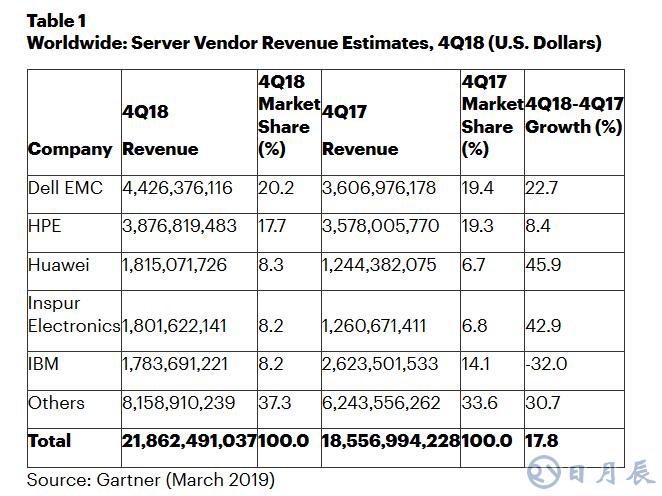 2018年全年服務(wù)器市場(chǎng)業(yè)績(jī)