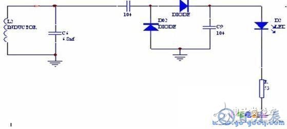(2) 整流肖特基二極管構(gòu)成接收回路的整流電路,接一個(gè)發(fā)光二極管當(dāng)作接收回路的指示燈。