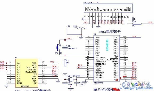 STC89C51和12的AD芯片TCL2543功能滿(mǎn)足要求價(jià)格便宜。顯示部分用1602顯示檢測(cè)的電壓和電流。