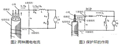 b也會經(jīng)L接線柱流入電流線圈La里,產(chǎn)生一定的誤差。有了保護(hù)環(huán)G以后,由于它和發(fā)電機(jī)的負(fù)極相連(注意保護(hù)環(huán)與L接線柱之間彼此是絕緣的),如圖3所示,兩處的漏電電流