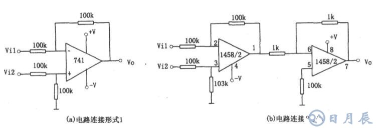 圖(a)電路輸入輸出關(guān)系為:V0=Vi2-Vi1圖中放大器的輸出信號電壓極性通常與輸入電壓極性相同。如果要求反相輸出,則采用圖(b)所示電路。其輸入輸出關(guān)系為:Vo=Vi1-Vi2。
