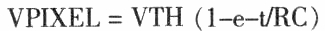 經(jīng)過(guò)像素(等效電路見下圖所示)的電壓的階躍響應(yīng)遵循以下公式: