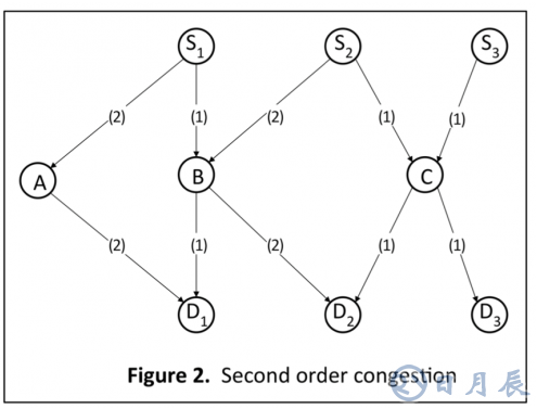 這項(xiàng)工作首先闡述了協(xié)商的基本思想,以及處理一階擁塞的方法。然后分析了二階擁塞,見下圖,并引入了對“歷史成本(history cost)”的需求。之后將這個(gè)概念進(jìn)行了推廣,并將布線延時(shí)引入考量。最后給出了這個(gè)算法的偽代碼,以及一些實(shí)驗(yàn)結(jié)果。相比于當(dāng)時(shí)的其他商用工具,這個(gè)方法能取得 11%的效果提升。