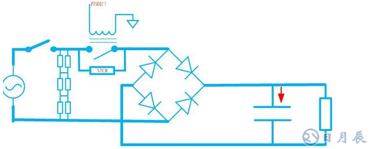 因此呢,可以選用負溫度系數(shù)的NTC的電阻進行調(diào)節(jié)。在起動過程剛開始時,電路有較強的抑流能力;隨著起動過程的進行,負溫度系數(shù)電阻的阻值下降,使電容器的充電電流又不至于太小,起動過程不至過長。