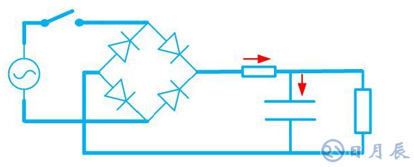 在起動的瞬間,交流輸入電壓通過整流器對電容器進行充電。
