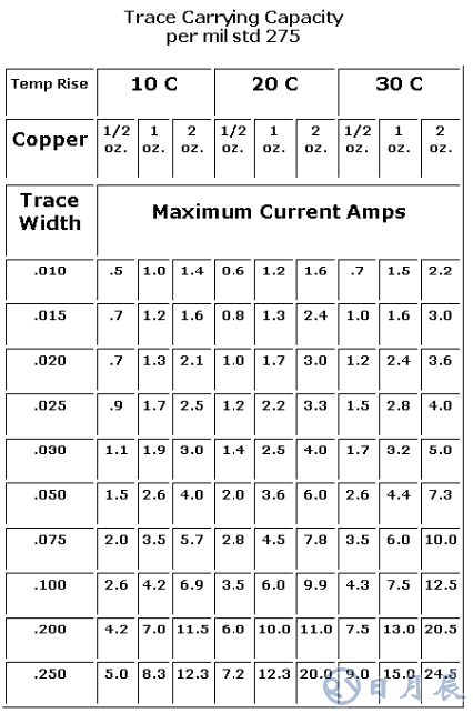 線寬的單位是:Inch 數(shù)據(jù)來源:MIL-STD-275 Printed Wiring for Electronic Equipment
