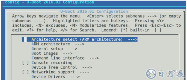 U-Boot采用Kconfig進(jìn)行項(xiàng)目管理,實(shí)現(xiàn)可裁剪可配置,新版U-Boot已支持make menuconfig功能,實(shí)現(xiàn)了易用的設(shè)計(jì)目標(biāo)。其配置界面與內(nèi)核一樣。