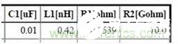容值10nF,封裝0603的X7R陶瓷的模型參數(shù)如下: