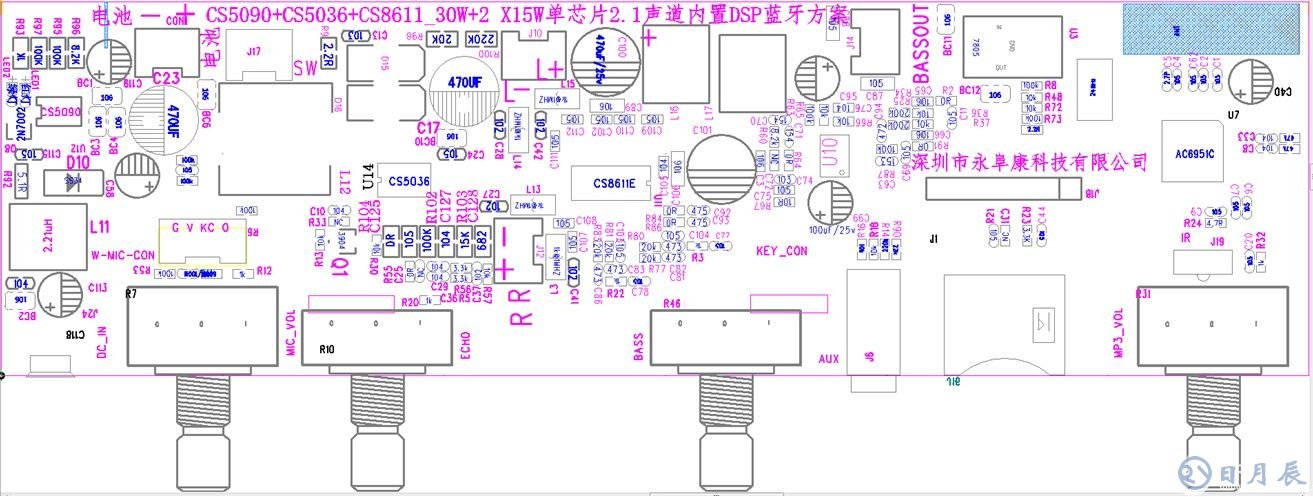 五。 CS5090E+CS5036E+CS8611E+AC6951C整體板PCB底層設(shè)計(jì)圖