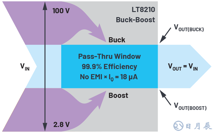 帶通工作模式提供高效率和EMI性能降壓-升壓區(qū)域