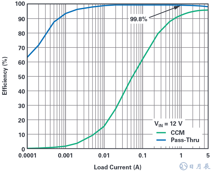 對于兩方面都想實(shí)現(xiàn)最佳效果的人來說,可以使用LT8210,它可以通過切換MODE1和MODE2引腳,在不同的工作模式之間切換。換句話說,LT8210在某些情況下可以作為具有固定輸出電壓(CCM、DCM,或Burst Mode™)的傳統(tǒng)的降壓-升壓穩(wěn)壓器運(yùn)行,然后,在應(yīng)用條件變化時(shí),轉(zhuǎn)而采用帶通模式。對于常開系統(tǒng)和啟停應(yīng)用而言,這個(gè)特性非常有用。
