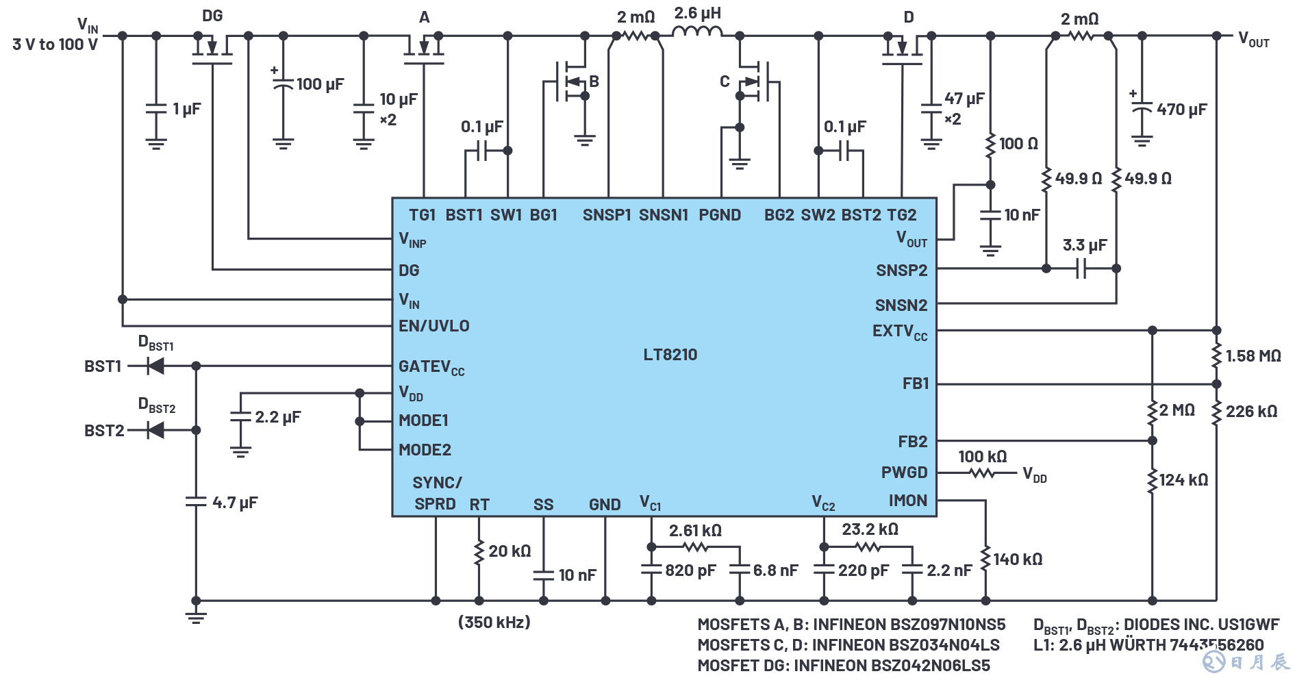 為汽車電子系統(tǒng)設(shè)計(jì)電源時(shí),LT8210 4開關(guān)降壓-升壓DC/DC控制器通過其2.8 V至100 V輸入工作范圍、內(nèi)置的反向電池保護(hù)和其新帶通工作模式,提供出色的解決方案。帶通模式可以改善降壓-升壓操作,實(shí)現(xiàn)零開關(guān)噪聲、零開關(guān)損失,以及超低的靜態(tài)電流,同時(shí)將輸出調(diào)節(jié)至用戶配置的窗口水平,而不是固定電壓。輸出電壓的最小和最大值與例如負(fù)載突降和冷啟動期間的大幅度瞬變相綁定,沒有MOSFET SOA或者由線性狀況導(dǎo)致的電流或時(shí)間限制。