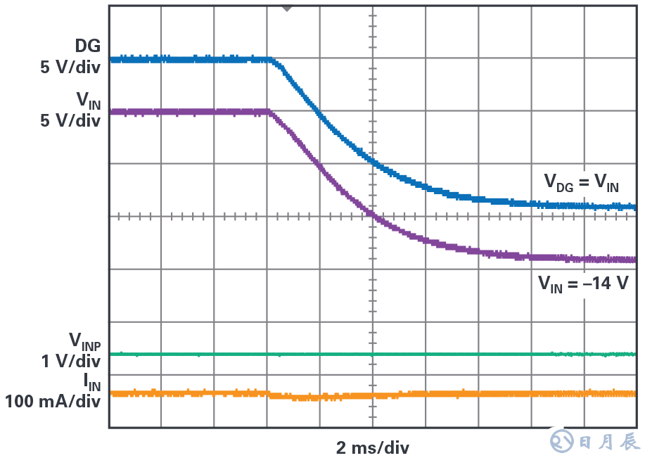 圖7.LT8210對電池反接的響應(yīng)。
