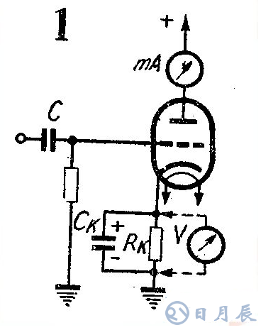 把直流毫安表串在電子管屏極回路中或把電壓表并接在陰極電阻RK上,如圖1所示。