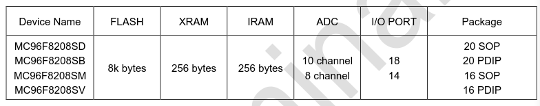 MC96F8208SMBN (SOP-16)詳解