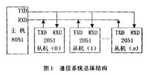在生產(chǎn)酸酐的小型控制現(xiàn)場中,需要對各反應(yīng)釜的溫度和壓力進行實時的監(jiān)測,并使它們保持在規(guī)定的誤差范圍內(nèi)。由于需要控制的設(shè)備較多、相互距離又較遠,且現(xiàn)場有較強的工業(yè)干擾,因此采用體積小、抗干擾能力強的單片機作為上位機與現(xiàn)場控制器來組成分布式數(shù)據(jù)采集與控制系統(tǒng)。在該系統(tǒng)中,上位機與現(xiàn)場控制器之間采用通信網(wǎng)絡(luò)連接,各測控單元獨立工作,完成參數(shù)的測量與控制;而在主控室內(nèi),由主機對各現(xiàn)場測控器的工作狀態(tài)進行監(jiān)測,向各分機發(fā)送控制命令以及對整個生產(chǎn)過程的數(shù)據(jù)進行統(tǒng)一的顯示、儲存等。在本系統(tǒng)中采用主從式RS-485串行通信標準。