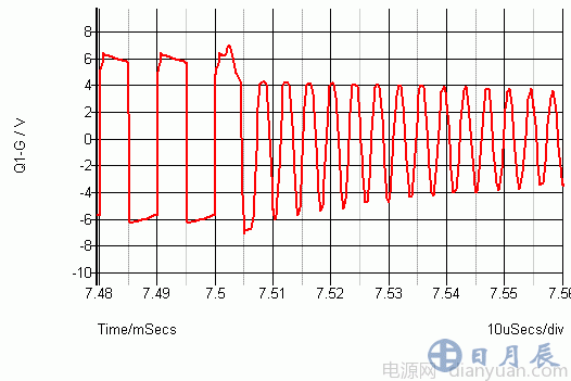 去探測G極的電壓,發(fā)現(xiàn)電壓波形如下: