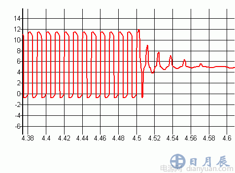 可看到,驅(qū)動信號在關(guān)機(jī)的時候,沒有了上面的那些震蕩。