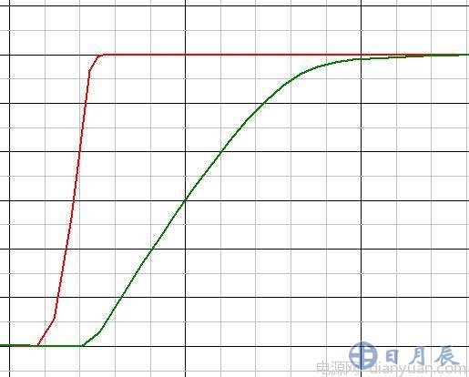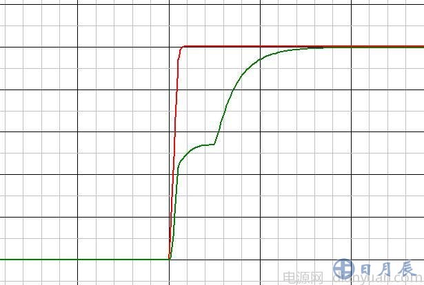 紅色的是R3=1歐姆,綠色的是R3=100歐姆。可見R3越大,MOS的導(dǎo)通速度越慢。