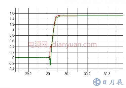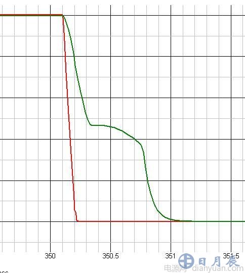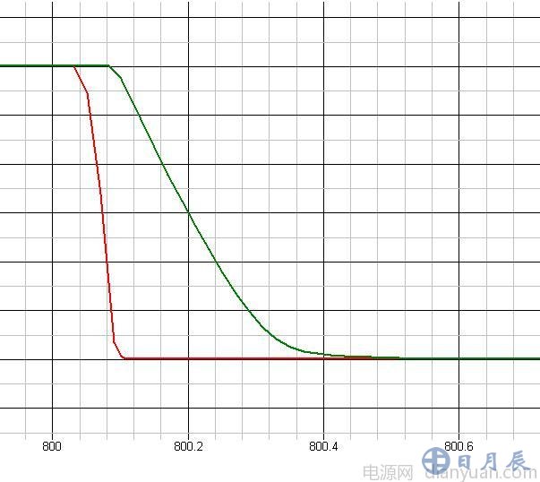 紅色波形為驅(qū)動源輸出,綠色為到達(dá)MOS的波形。基本保持了驅(qū)動源的波形。