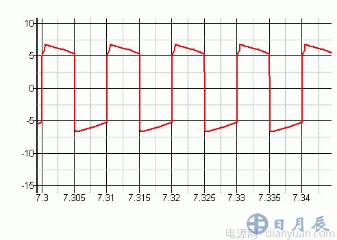 紅色波形為驅(qū)動源V1的輸出,綠色為Q1的G級波形。可以看到,Q1-G的波形為具有正負(fù)電壓的方波,幅值6V了。