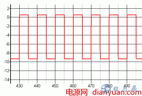 驅(qū)動電壓變得平緩了些。如果把驅(qū)動變壓器的電感量增加到500uH。驅(qū)動信號就如下圖: