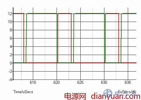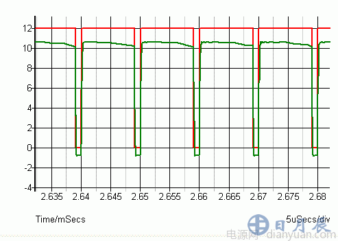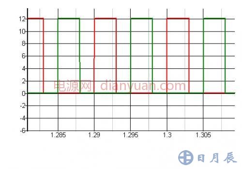 驅(qū)動源參數(shù)為12V ,100KHz, D=0.5。