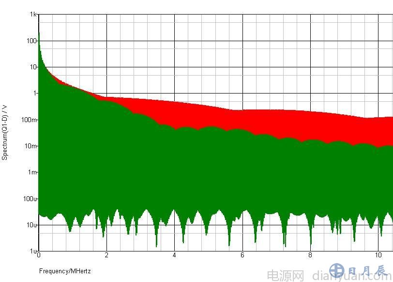 紅色的是R3=1歐姆,綠色的是R3=100歐姆。可見,驅(qū)動電阻大的時候,高頻諧波明顯變小。