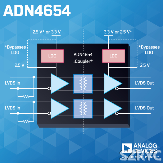 中國,北京– Analog Devices, Inc. (ADI)今天推出全新iCoupler®數(shù)字隔離器系列中的首款產(chǎn)品ADN4624,該產(chǎn)品提供10Gbps的總帶寬。ADN4624數(shù)字隔離器提供四個2.5Gbps的通道,可在電氣域內(nèi)無縫傳輸數(shù)據(jù),從而可以在數(shù)字健康、儀器儀表和智能工業(yè)中采用全新的系統(tǒng)架構(gòu)。該新型數(shù)字隔離器可簡化設(shè)計,并能夠輕松集成隔離功能,以實現(xiàn)安全性或數(shù)據(jù)完整性。ADN4624是一種緊湊型解決方案,既滿足各項醫(yī)療標(biāo)準(zhǔn),又能可靠地隔離高保真視頻和成像鏈路、精密模擬前端和串行互連,可用于替代笨拙的專用光纖解決方案。