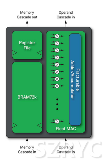 在人工智能應(yīng)用中,BRAM可以作為一個存儲器,用于存儲那些預(yù)計不會在每個周期中發(fā)生變化的值,諸如神經(jīng)元權(quán)重和激活值。LRAM更適合存儲只有短期數(shù)據(jù)局部性的臨時值,諸如輸入樣本的短通道以及用于張量收縮和池化活動的累積值。