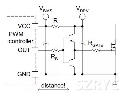 特點:驅(qū)動環(huán)路距離不能太遠,否則因為寄生電感降低開關(guān)速度和導致振鈴。另外,一般驅(qū)動器也難以提供很大的驅(qū)動電流。