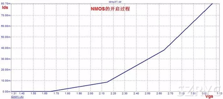 下圖是一個簡單的MOS管開啟模擬: