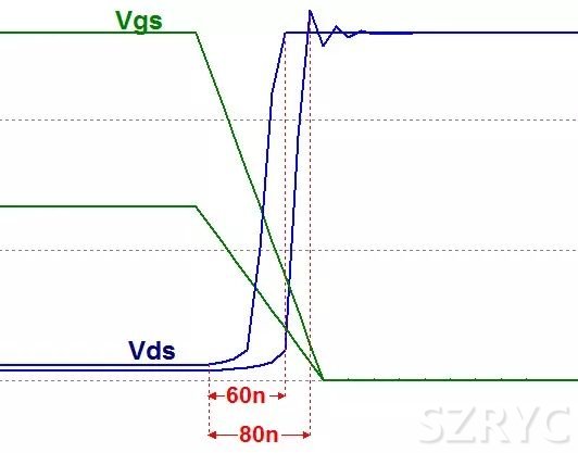t3~t4階段:渡過米勒平臺后,即Cgd反向充電達到Vgs,Vgs繼續(xù)升高至最終電壓,這個電壓值決定的是MOS管的開啟阻抗Ron大小。