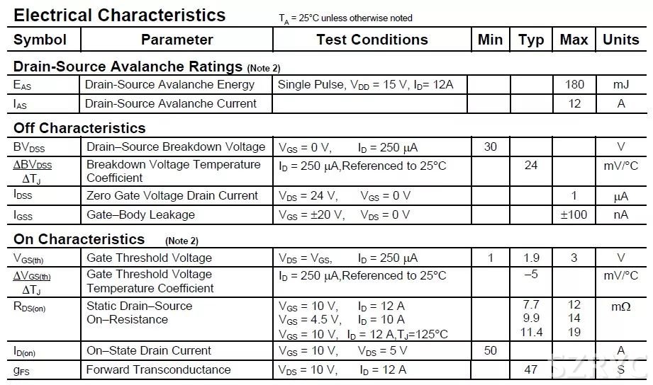 上面已經(jīng)詳細介紹了 MOS 管的工作機制,那么我們再來看 datasheet 這些參數(shù)就一目了然了。