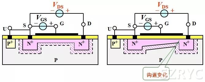 2、Vds對MOS管溝道的控制
