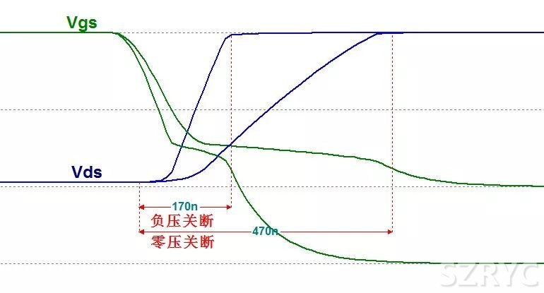 由上面的分析可以看出米勒平臺是有害的,造成開啟延時,不能快速進入可變電阻區(qū),導致?lián)p耗嚴重,但是這個效應(yīng)又是無法避免的。