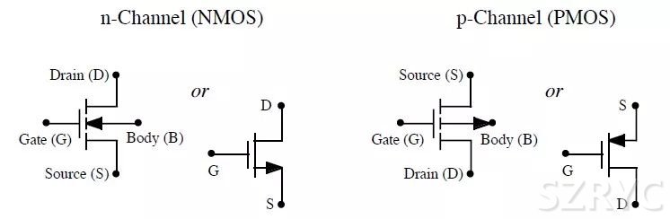MOS 管的符號描述為: