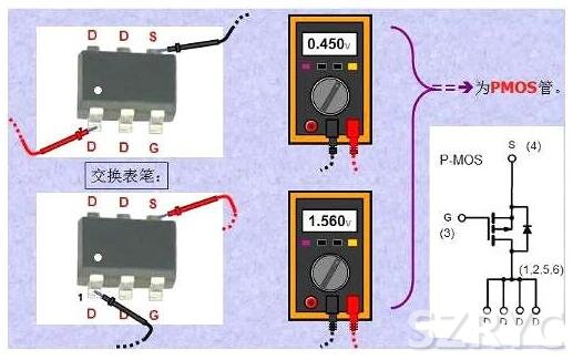 如何分辨三個(gè)極?D極單獨(dú)位于一邊,而G極是第4PIN。剩下的3個(gè)腳則是S極。它們的位置是相對(duì)固定的,記住這一點(diǎn)很有用。請(qǐng)注意:不論NMOS管還是PMOS管,上述PIN腳的確定方法都是一樣的。