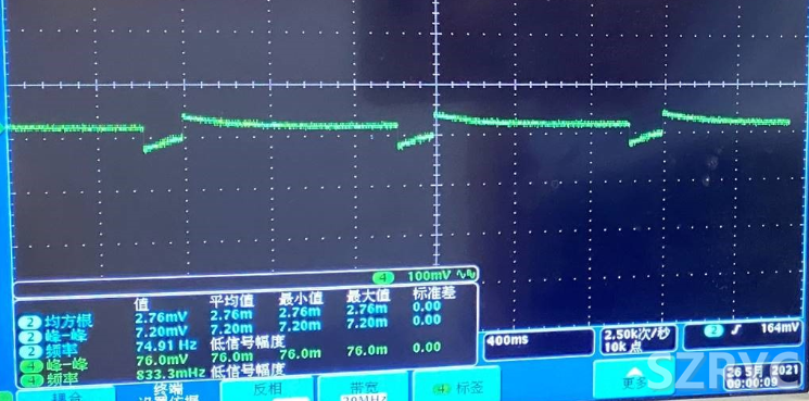 經(jīng)過和客戶確認(rèn),客戶后來采用運放做跟隨驅(qū)動的方法,重新測試一版,測試采樣端波形如下圖,從硬件電路來看,應(yīng)該找到問題所在,目前還在驗證中。