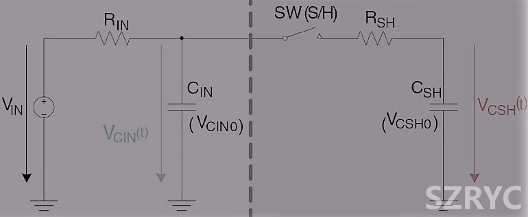 為了更加直觀,我們刪繁就簡,重新整理這個電路,單看輸入、采樣端的電路模型,大致如下: